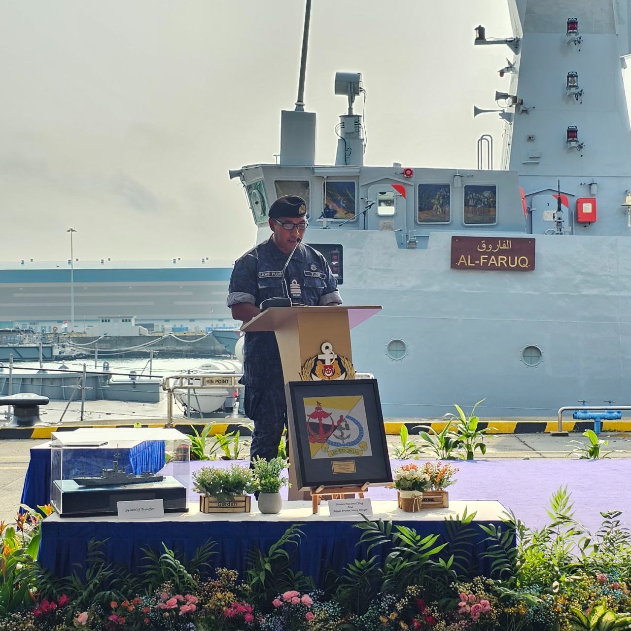 The ship was given the callsign V8SD where V8 represents Brunei’s international callsign, ‘S’ represents Singapore and ‘D’ represents the ship’s previous name DAUNTLESS. AL-FARUQ will also maintain the same pennant number 99 as a reflection of the close ties between Brunei Darussalam and Singapore. The name “AL-FARUQ” was a title given to one of the closest companions of the Prophet Muhammad S.A.W., who was known as Sayyidina ‘Umar Al-Faruq, due to his courage in upholding justice and eradicating oppression. This characteristic is associated with the ship’s previous name DAUNTLESS, underlines the qualities of bravery and courageousness, which are instrumental in carrying out the navy’s duties to Allah Subhanahu Wata’ala, the Monarchy dan in defending the nation’s maritime sovereignty